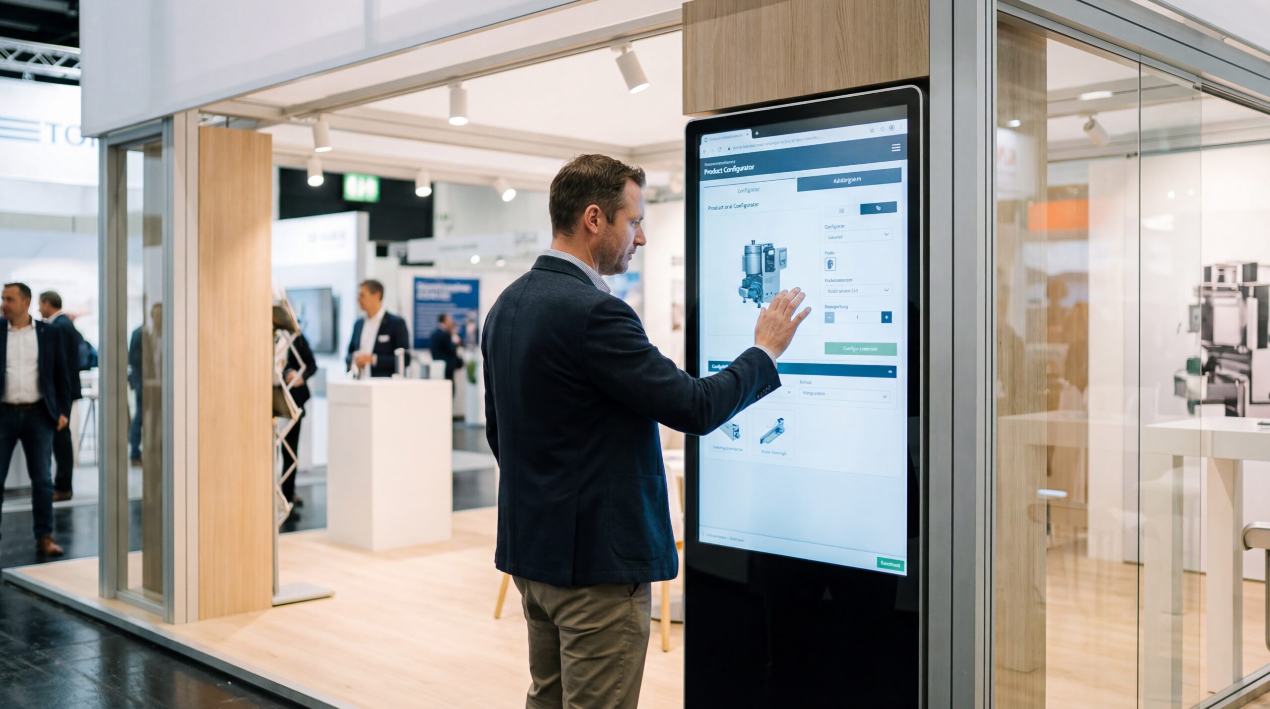 Eine Touch Stele wird zum interaktiven Kiosksystem, an dem Besucher selbstständig Produktkataloge durchsuchen, sich für Newsletter anmelden oder an Umfragen teilnehmen können.