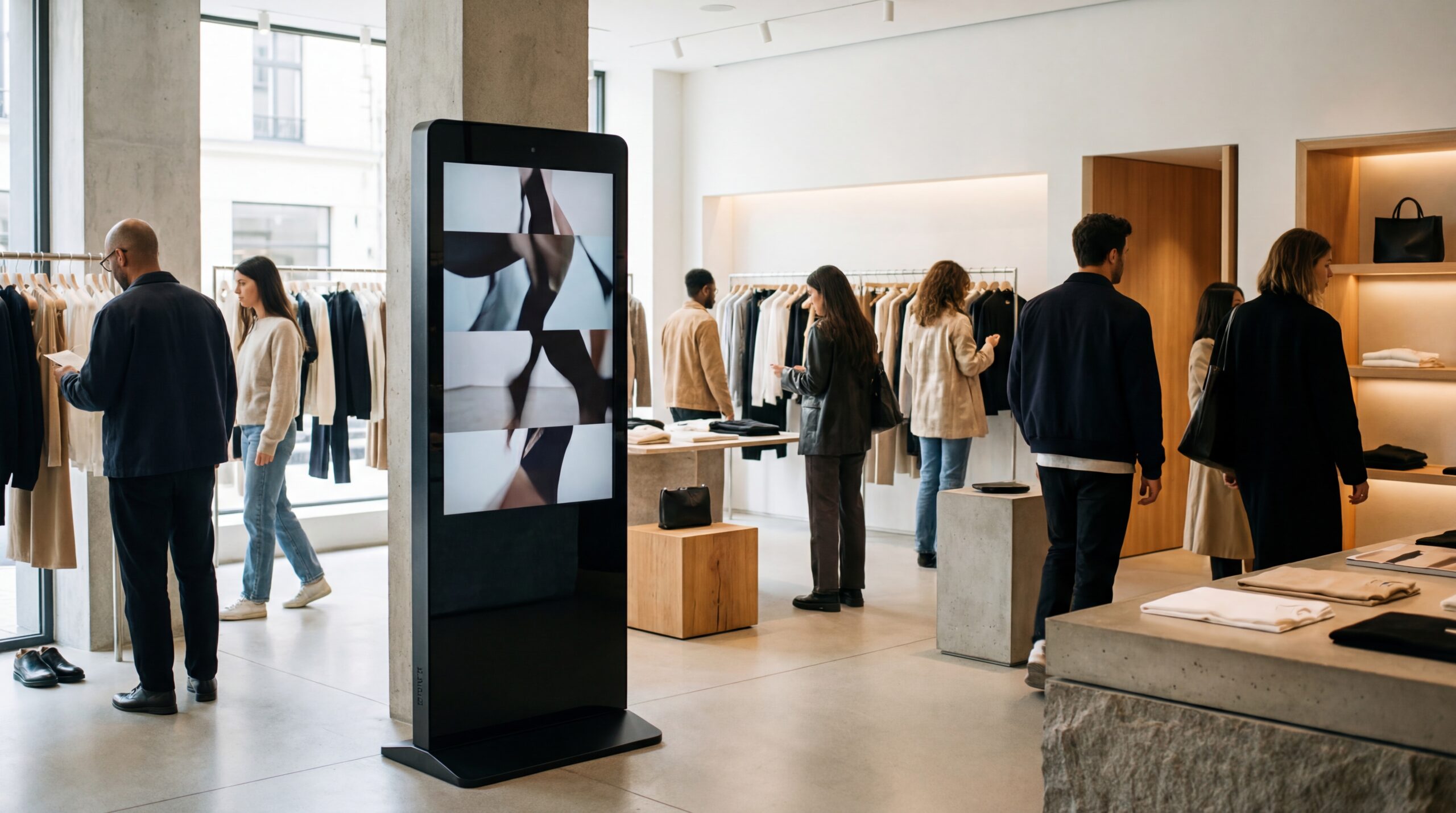Platzieren Sie eine dynamische Werbestele Indoor direkt am Point of Sale, um Sonderangebote, neue Kollektionen oder Marken-Videos zu zeigen. Sie ist der perfekte digitale Kundepper.