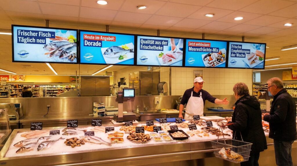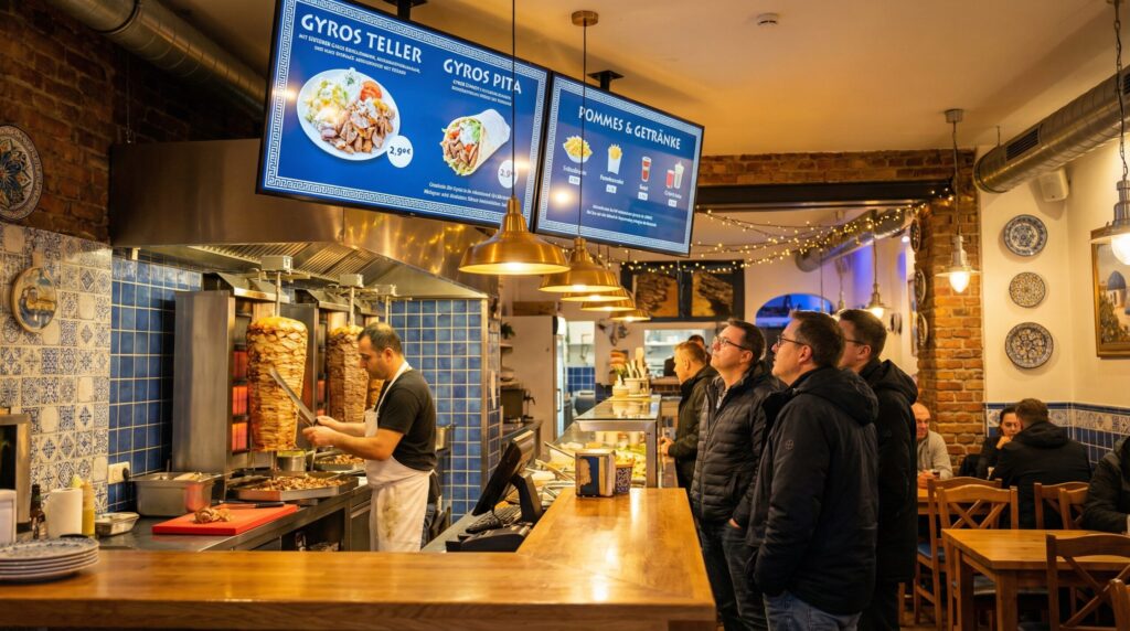 Außerdem setzen viele erfolgreiche Gastronomiebetriebe gezielt auf 43 Zoll oder 55 Zoll Menüboard Displays, die direkt über der Theke oder an der Wand montiert werden. Dadurch entsteht nicht nur eine moderne Präsentation der Speisekarte, sondern gleichzeitig auch ein professioneller Gesamteindruck, der das Restaurant optisch aufwertet und das Kundenerlebnis verbessert.