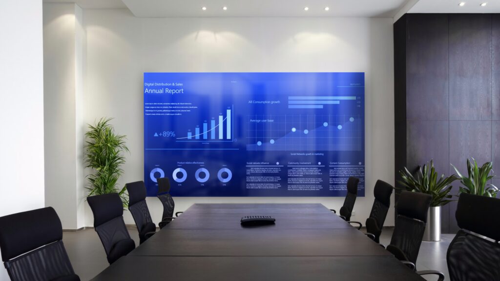 - Hohe Helligkeit und Kontrast für optimale Sichtbarkeit auch in hellen Meetingumgebungen.